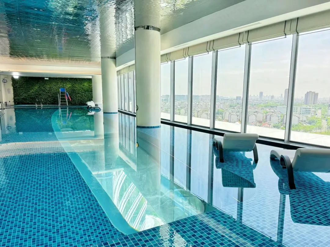 該室內(nèi)透明懸空泳池搭載了“逐夢深藍(lán)®低氯水處理技術(shù)”和“普派克®恒溫恒濕系統(tǒng)”兩大核心技術(shù),確保了泳池水質(zhì)的潔凈與健康,同時維持了室內(nèi)空氣的宜人與清新。