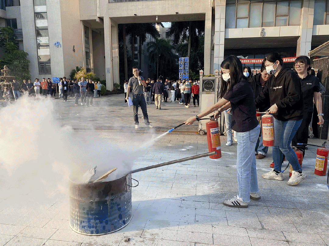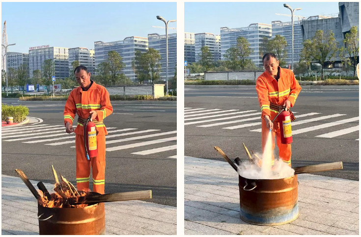 何文強現場示范時強調:“滅火器的使用要牢記‘提、拔、握、壓’四字口訣,提握瓶身時要保持平穩,對準火焰根部按壓噴射,才能快速壓制火情。”隨后,員工們逐一上陣實操,在專業人員的手把手指導下糾正動作偏差,反復練習直至熟練掌握,“一次比一次熟練”“在學校也參加過,常鞏固才踏實!”新老員工們完成實操便分享著收獲。