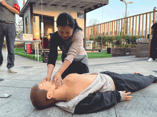 心肺復蘇(CPR)急救培訓環節,何文強借助模擬人教具,詳細講解按壓位置、力度、頻率及人工呼吸配合等核心操作要點。員工分組實操演練,在專業指導下逐一刻畫規范動作,切實掌握了這一關鍵救命技能。