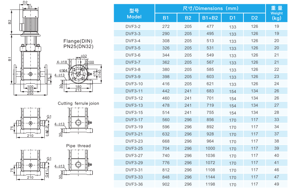 DVF立式多級不銹鋼水泵是一種多用途產(chǎn)品,可以輸送從自來水到工業(yè)液體的各種不同介質(zhì),適應(yīng)于不同溫度,流量和壓力范圍。主要用途如下: